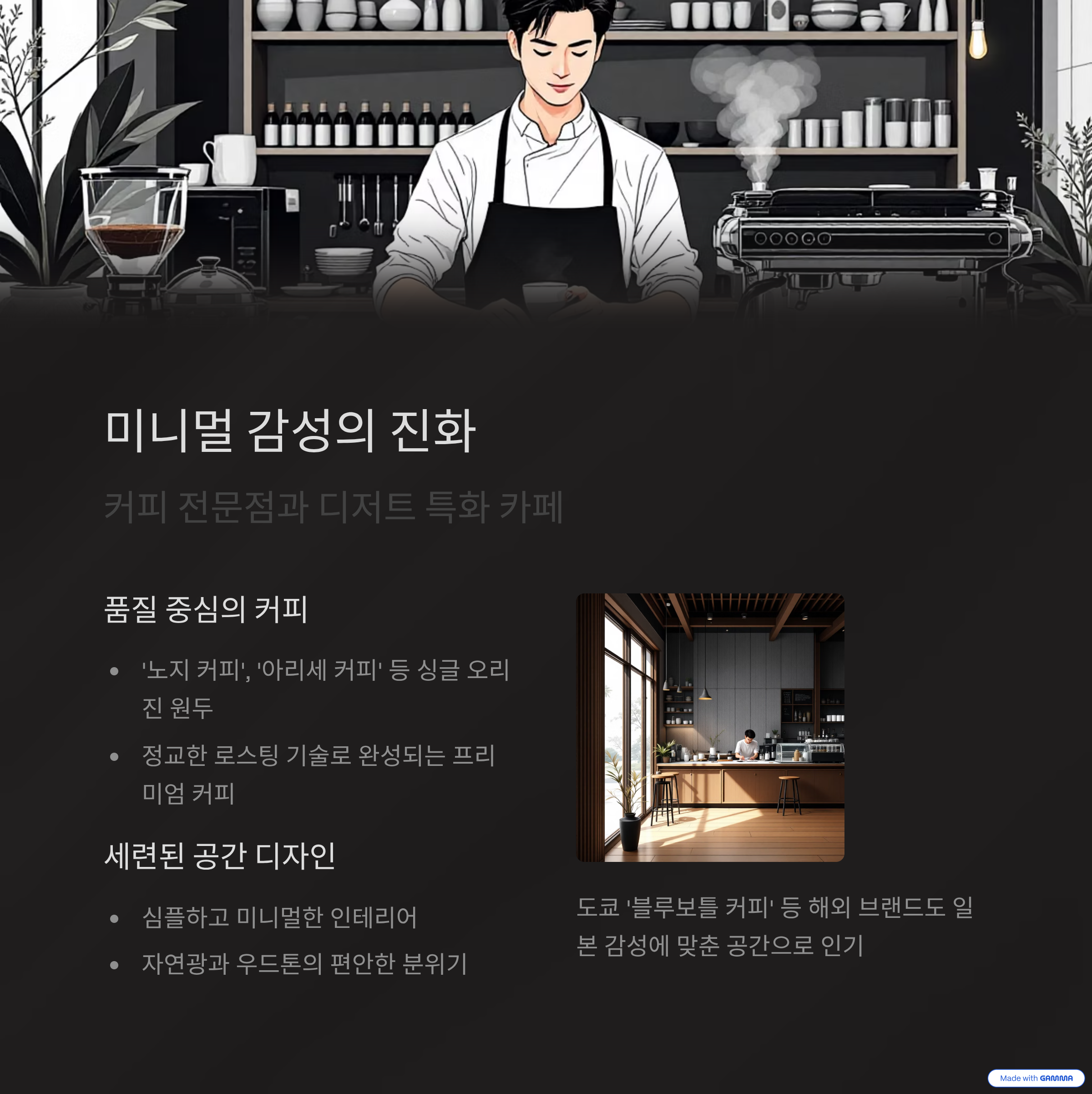 | 콘셉트 카페 | 미니멀 감성 | 소셜 공간 |