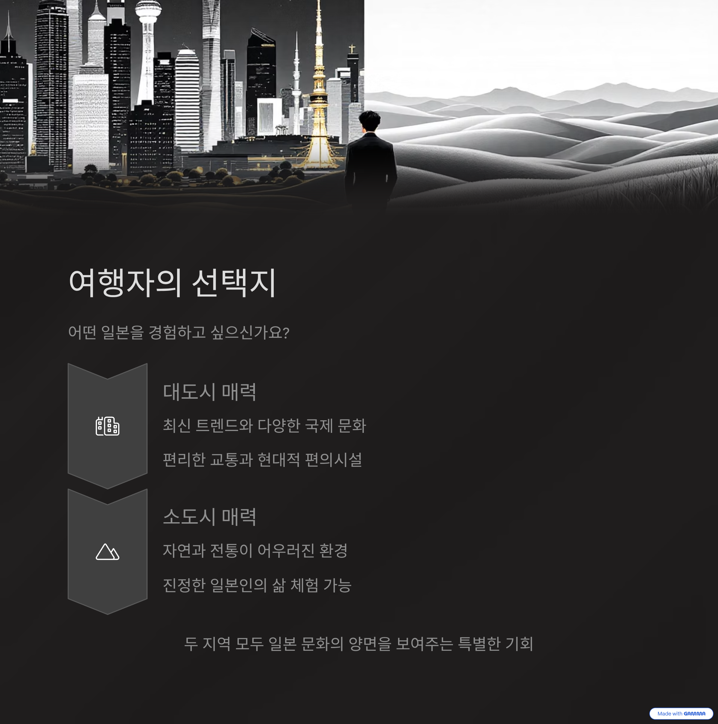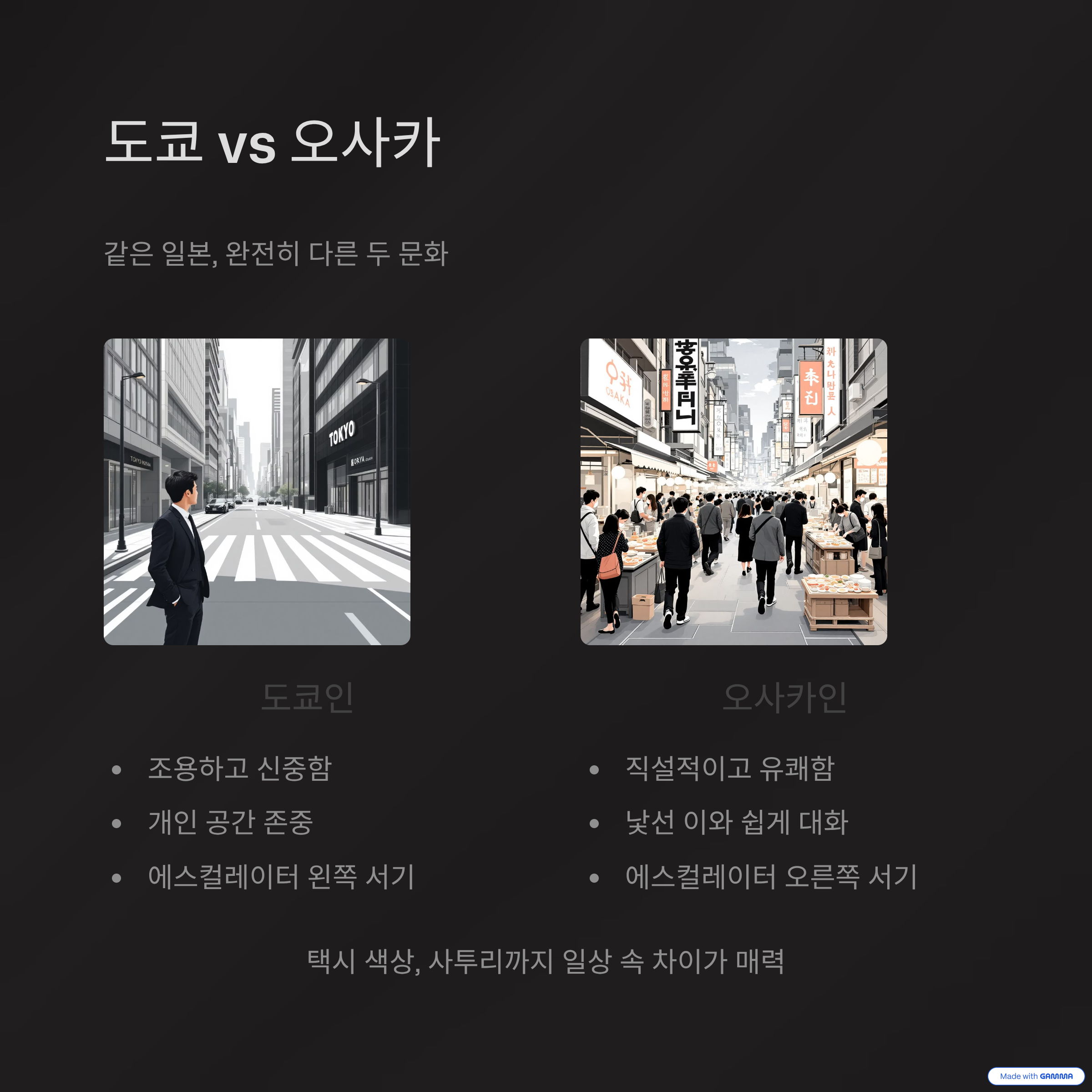 일본의 대도시와 소도시는 그 자체로 서로 다른 문화를 품고 있는 공간입니다. 빠르고 역동적인 대도시에서는 최신 유행과 도시인의 삶을 경험할 수 있고, 소도시에서는 전통과 공동체의 따뜻한 면모를 느낄 수 있습니다. 어느 곳이 더 좋다기보다는, 두 곳 모두의 장점을 이해하고 경험하는 것이 진정한 일본을 만나는 길입니다. 여러분도 다음 일본 여행에서는 두 도시 유형을 모두 방문해보며 더 깊은 통찰을 얻어보시길 바랍니다.