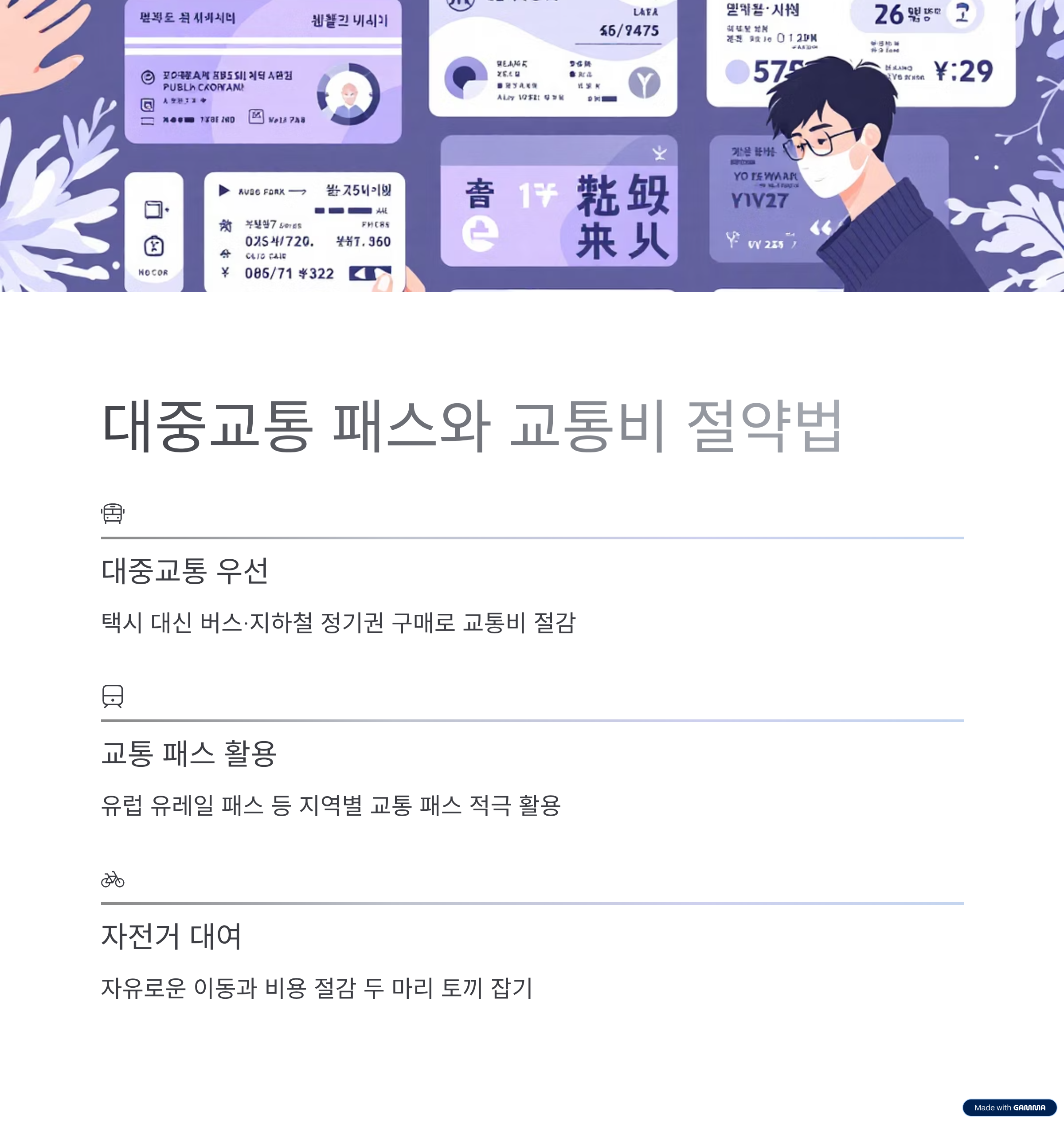| 교통·숙박 | 식비 관리 | 비상 예산 |
