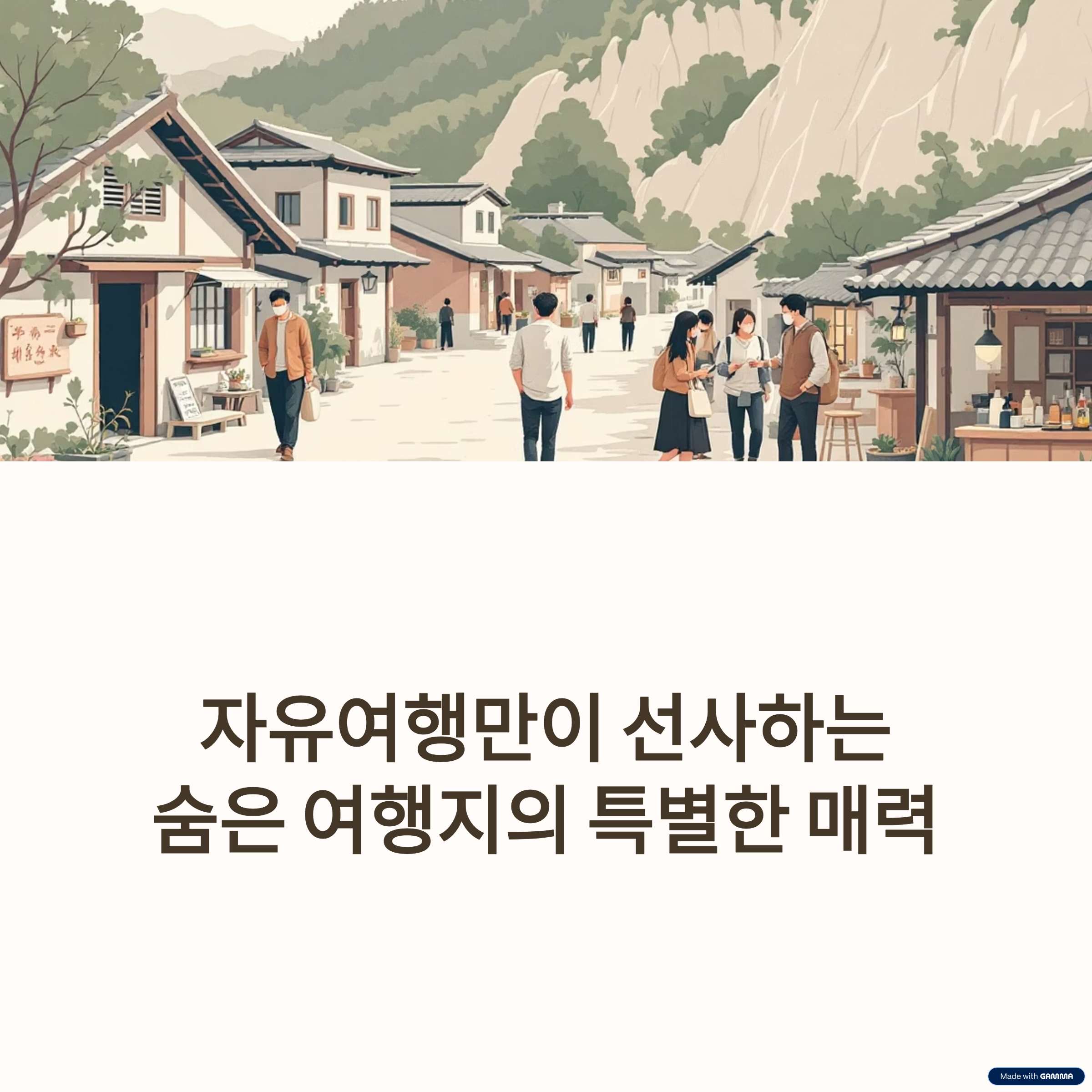 자유여행으로만 갈 수 있는 숨은 여행지는 단순한 관광을 넘어, 여행자가 스스로 길을 찾아내고 현지인과 교류하면서 만들어가는 특별한 기억을 선사합니다. 이 과정에서 예상치 못한 어려움도 만나지만, 바로 그 경험이 여행의 가치를 더욱 높여줍니다. 낯선 길에서 헤매던 순간, 작은 마을에서 받은 친절한 미소, 그리고 사진으로 담을 수 없는 공기의 온도와 소리까지, 모든 것이 삶의 소중한 자산으로 남게 됩니다. 안전을 지키며 현지 문화를 존중한다면, 이 여행은 누구에게나 다시 꺼내 보고 싶은 보석 같은 추억으로 자리 잡을 것입니다.