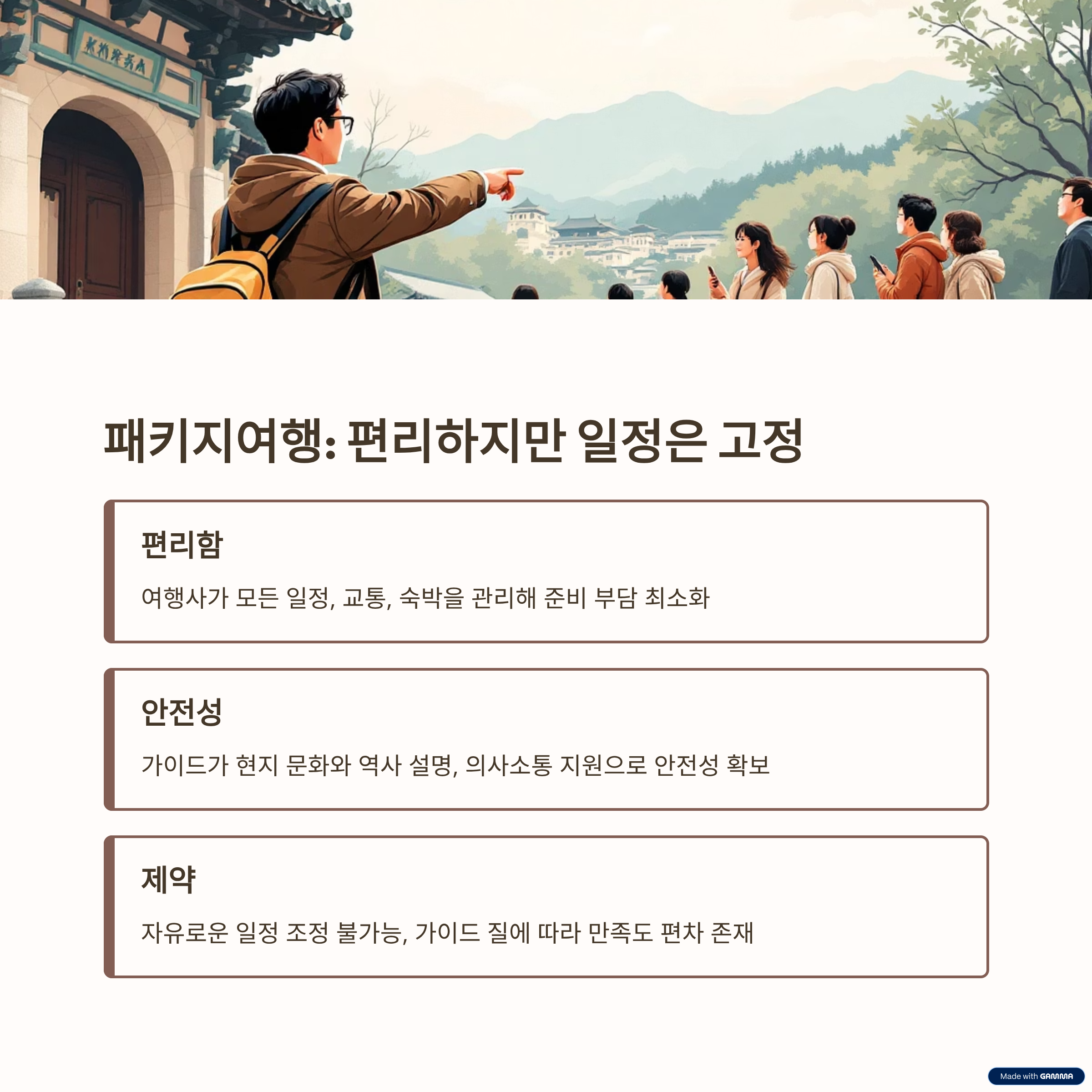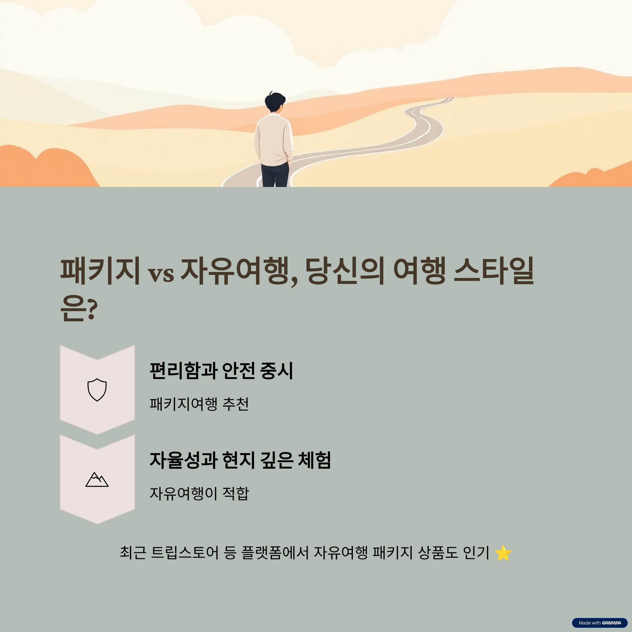 여러분은 여행을 떠날 때 어떤 방식을 더 선호하시나요? 패키지의 편리함과 안전함을 선택할지, 아니면 자유여행의 자율성과 유연함을 선택할지 의견이 궁금합니다. 댓글로 경험을 나눠 주시면 더 풍성한 대화가 될 것 같습니다.