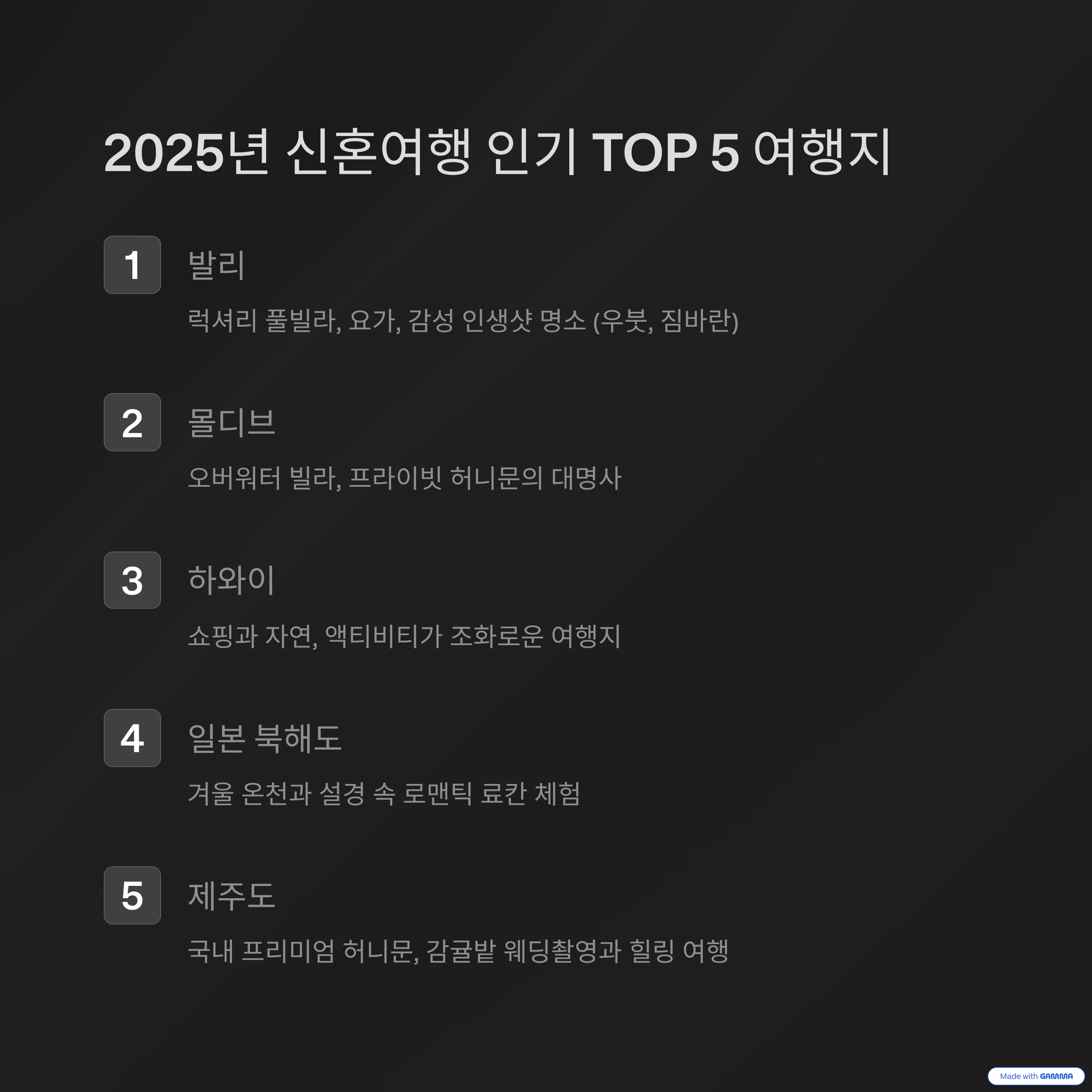 신혼여행 허니문추천 2025여행 로맨틱여행 지속가능여행 신혼부부여행