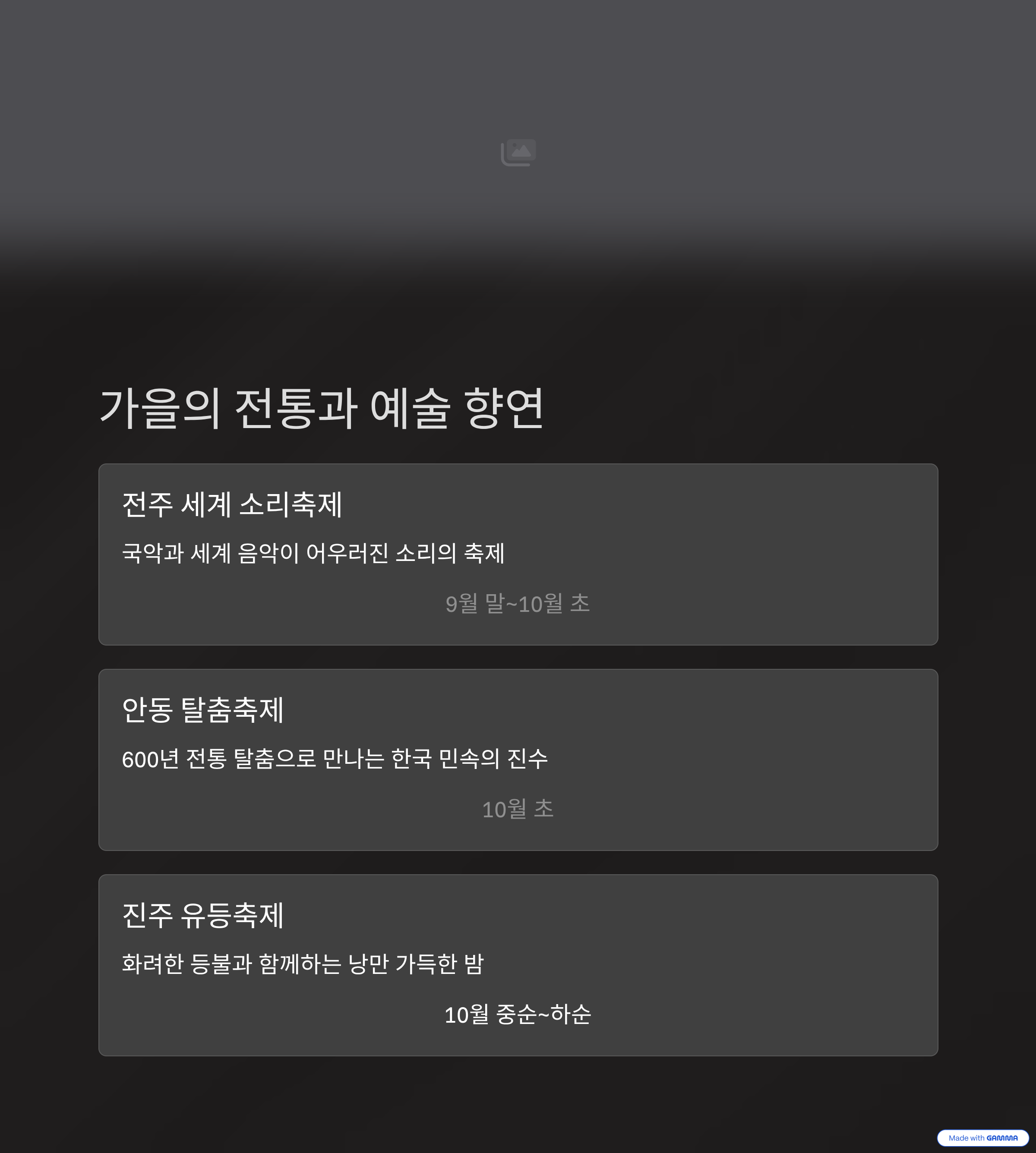 | 가을 축제 | 단풍, 전통 문화와 함께하는 계절의 즐거움 |